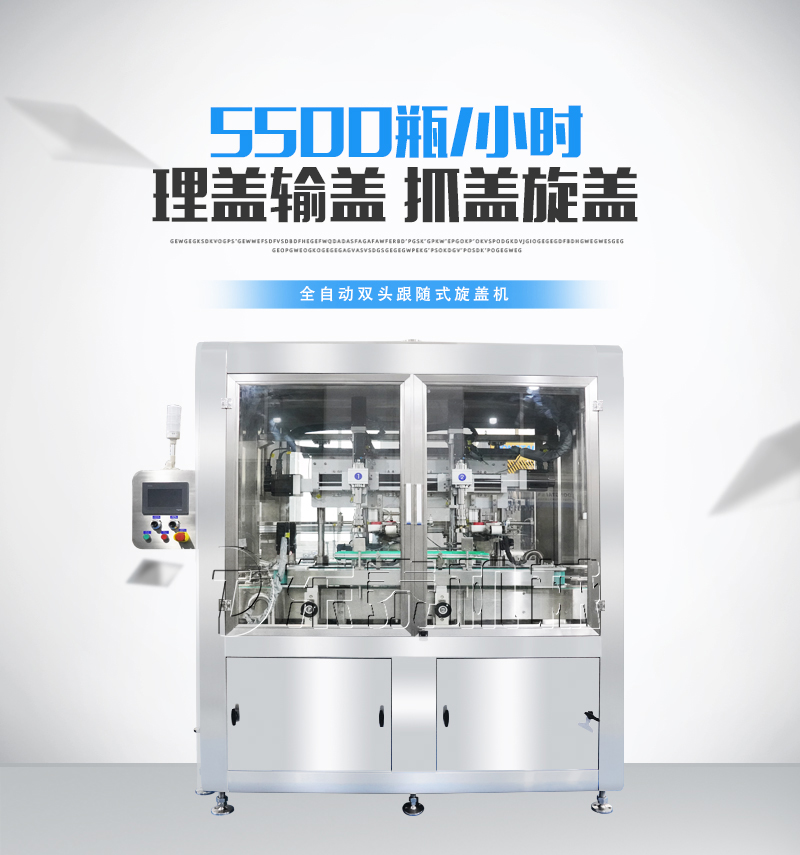 輸送機構(gòu)及控制系統(tǒng)組成。整機結(jié)構(gòu)簡單、調(diào)整方便。該設(shè)備為我司研制,產(chǎn)品在移動過程中,完成旋蓋動作。區(qū)別于常規(guī)旋蓋機,在旋蓋時需要停頓,會使物料晃出瓶口,污染瓶身。該機旋蓋不停頓,有效的避免了旋蓋停頓晃液,保持瓶身清潔。