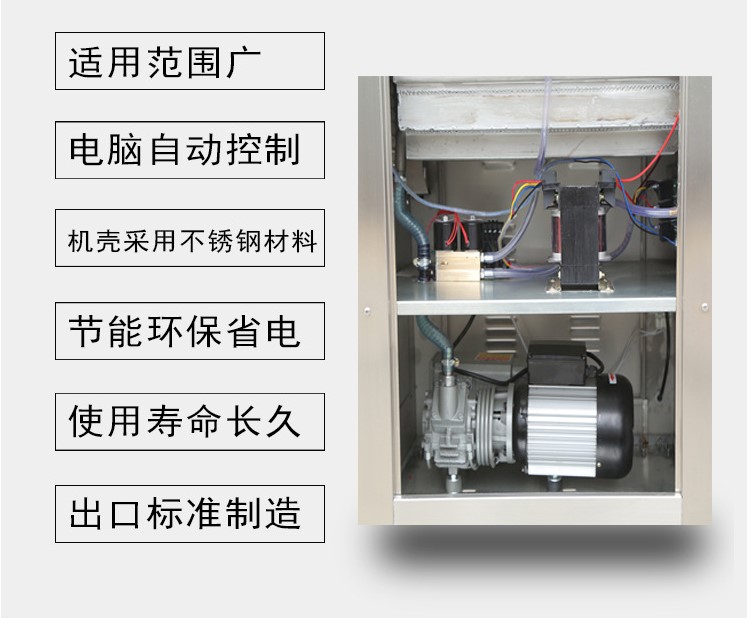 架體采用國際標(biāo)準(zhǔn)食品用304不銹鋼板,強度高,不易破損,它獨特的傾斜臺面設(shè)計,可以保證產(chǎn)品內(nèi)的水份不流失,從而使產(chǎn)品的含水真空包裝更易操作。