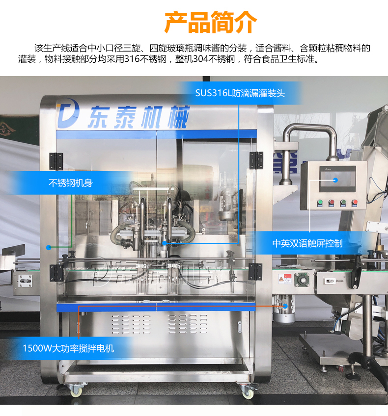 現(xiàn)在很多行業(yè)領(lǐng)域的發(fā)展方法都有了一定的更改,為了能使我們的使用者可以相對于企業(yè)擁有更加深入的了解芝麻醬灌裝機機械,不但是擁有完善的售后,還設有24小時的熱線電話,也完全打破了傳統(tǒng)的未來發(fā)展方法,展開了多渠道未來發(fā)展。芝麻醬灌裝封口機生產(chǎn)設備觸摸式操作彩屏,可顯示生產(chǎn)狀態(tài)、操作程序和灌裝方式、畫面目標、操作簡單、維護方便,期間我們也不斷地提高瓶裝芝麻醬自動灌裝機械的性能選用直瓶進瓶、出瓶,使充填功能得以擴展,各種形狀的容器得到有效充填從而滿足社會發(fā)展,如果你也需要一款芝麻醬灌裝封口機生產(chǎn)設備,那就到我們東泰來看看吧!