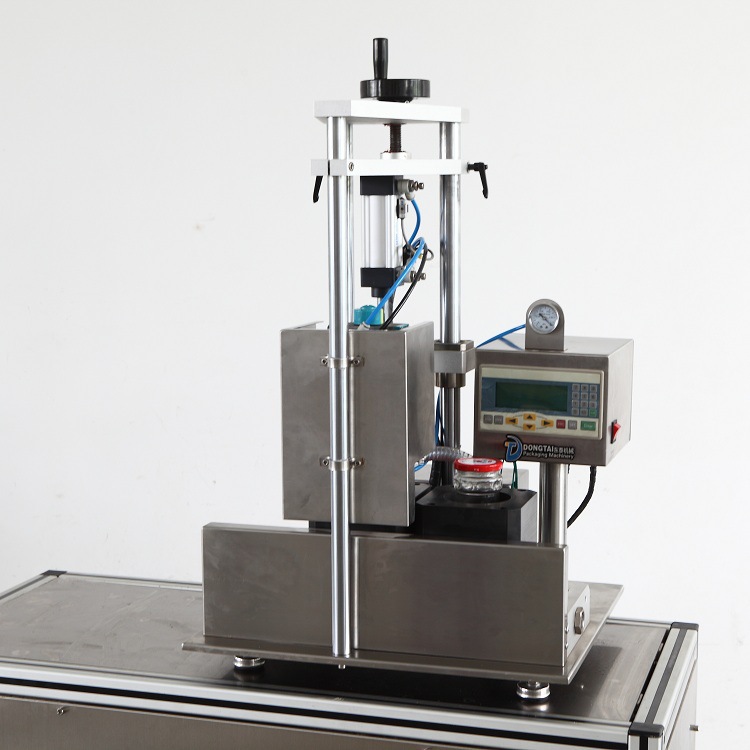 這款小型玻璃瓶真空擰蓋機(jī)廣泛適用于罐頭、辣椒醬醬料各行業(yè)中馬口鐵玻璃瓶的真空旋蓋。并且東泰機(jī)械的半封閉式雙工位半自動(dòng)真空旋蓋機(jī)達(dá)到了國(guó)家規(guī)定的經(jīng)濟(jì)、易用、適用、可靠等標(biāo)準(zhǔn)。適合中小型生產(chǎn)廠家、有特殊規(guī)格用途的各類瓶裝等廠家的可選機(jī)型。